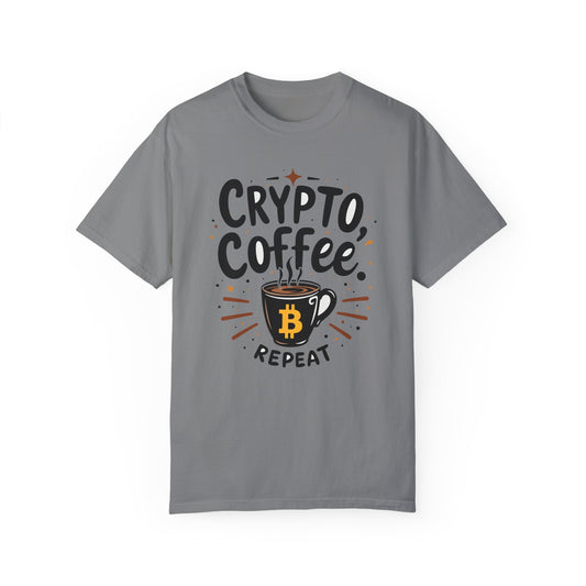 Bitcoin Crypto Coffee Unisex Tee, Cryptocurrency Tshirt, Bitcoin Lover Gift, Coffee Theme Shirt, Bitcoin Merch, Casual Top, Gift for Him,